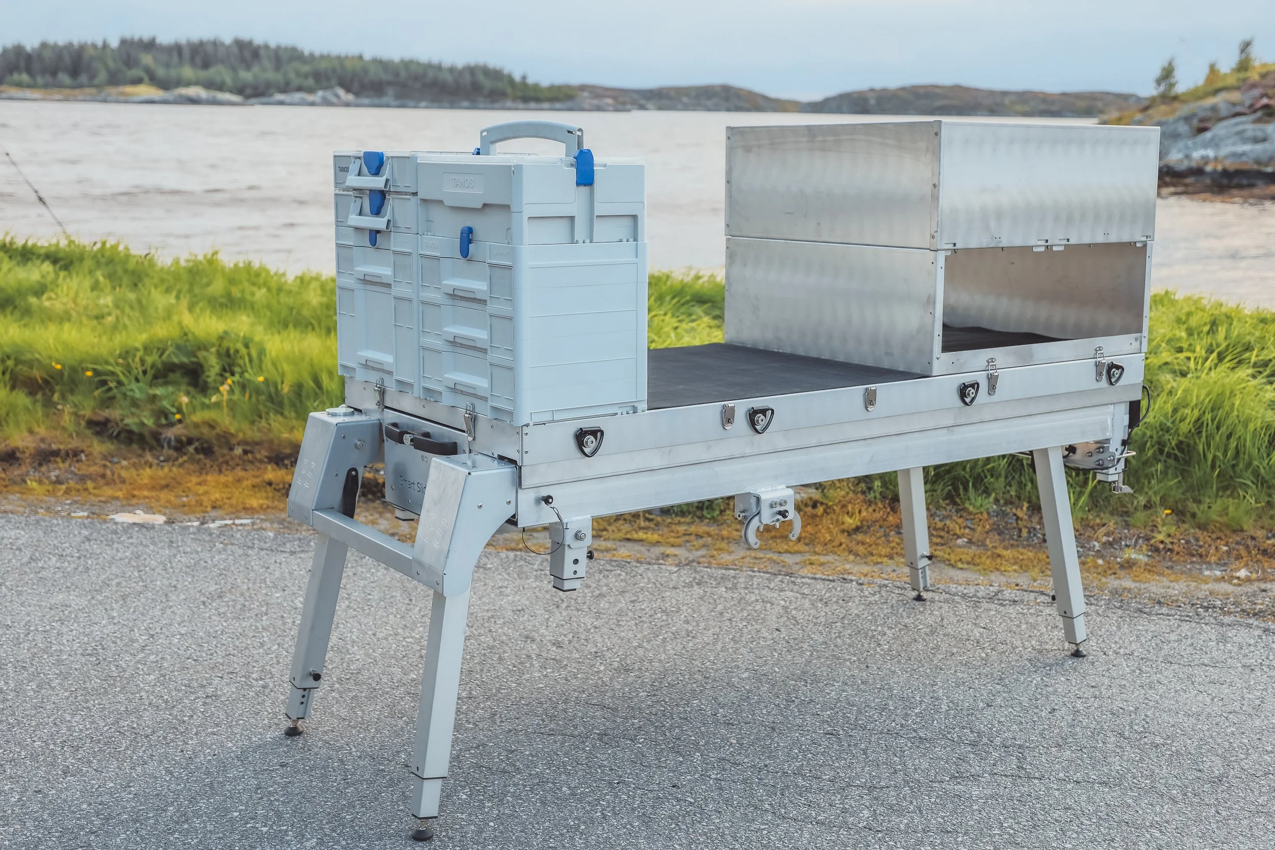 - Modulær design: Klikk på verktøykasser, reoler eller andre moduler etter behov – eller fjern drone-utstyret og bruk 3S som ren arbeidsbenk/transportplan.